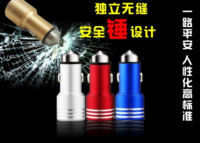 On-board car charger metal safety hammer Xiaomi car charging fast for Huawei flash-charging apple cigarette lighter double usb-Taobao