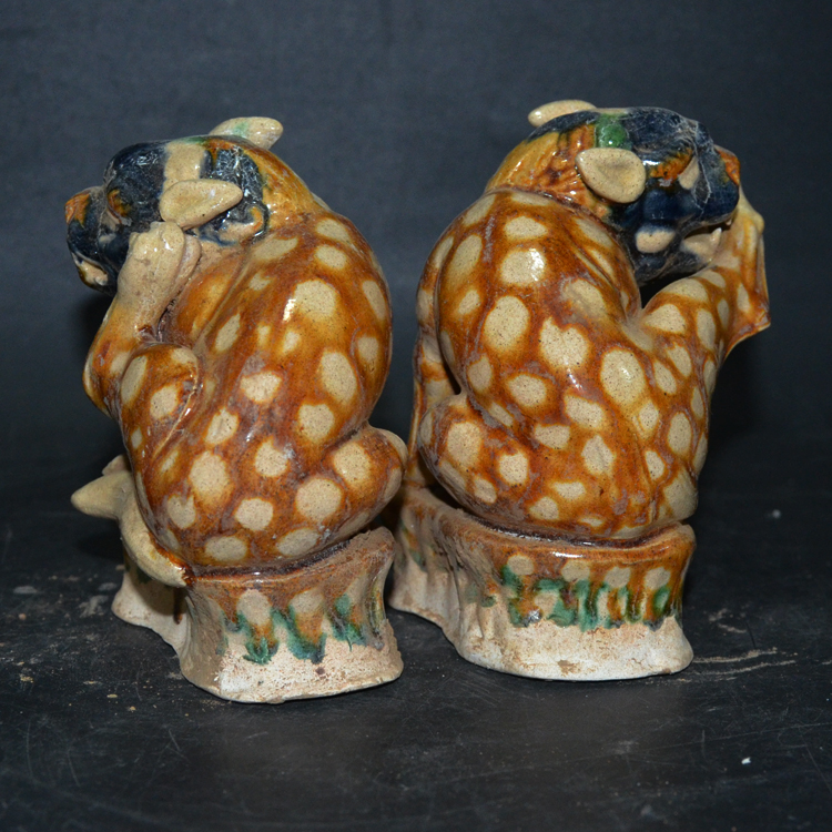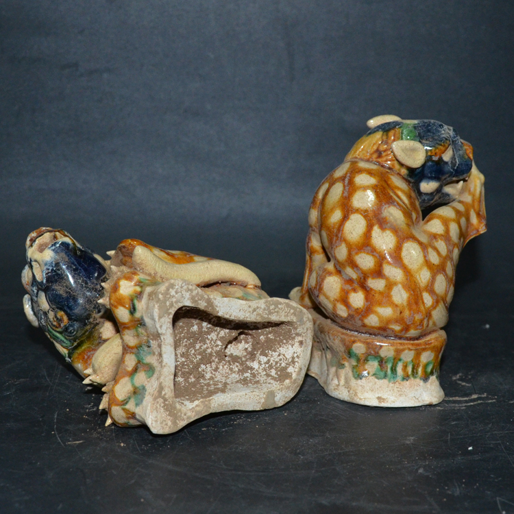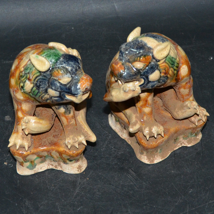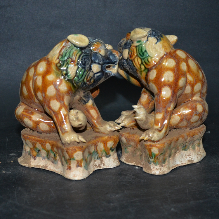 Antique collection Jingdezhen factory goods ceramics Pair of noisy lions ornaments antique ancient porcelain