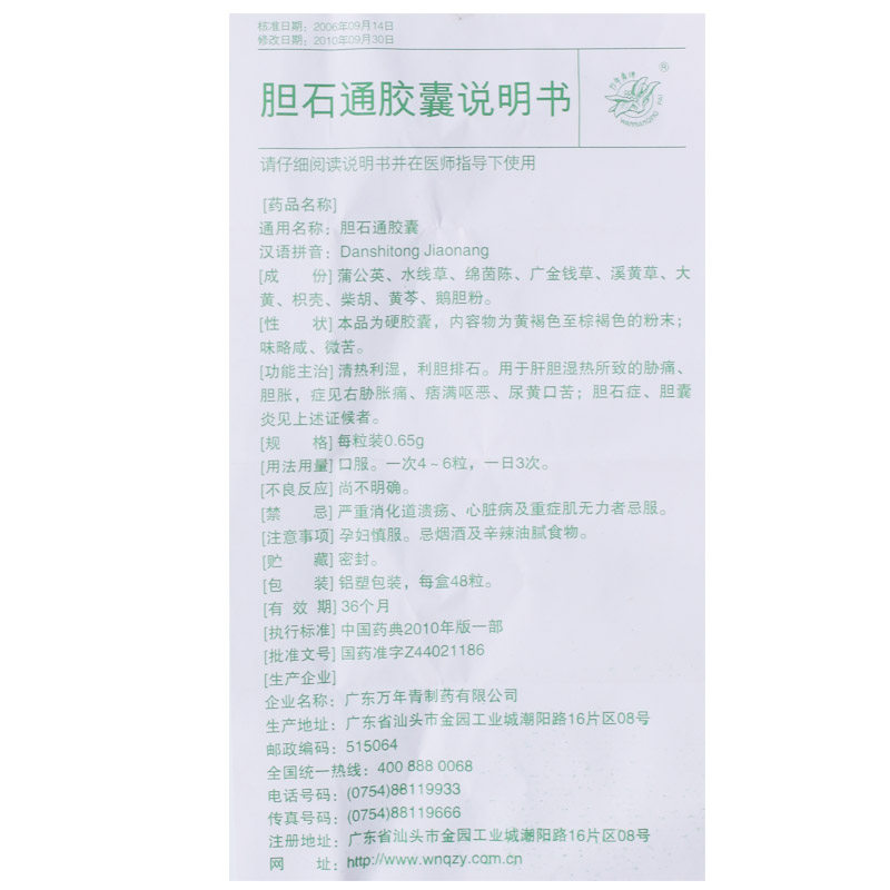 As low as 19 5 boxes) Wannianqing Danshitong Capsules 0 65g*48 capsules box cholelithiasis cholecystitis