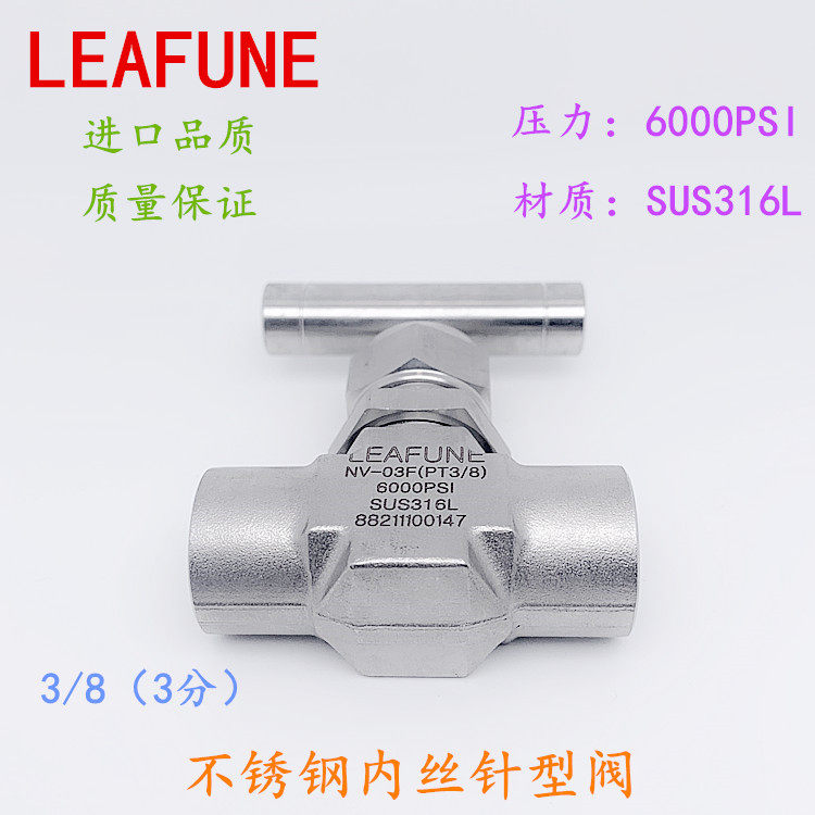 Imported high-quality stainless steel SUS316L high pressure 6000PSI internal thread instrument needle valve NV-03F 3 8