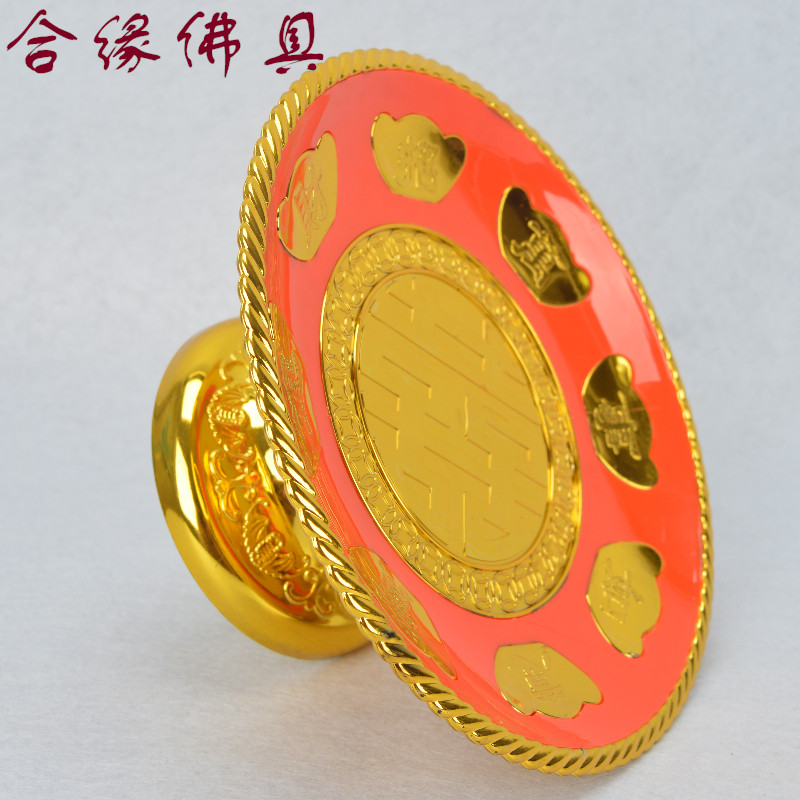 Bill Caijin Gold Plated Fruits Pan Plastic Festive Wedding Wedding Wedding Celebration Gift Instrument Red Double Delight Fruit Tray Hem