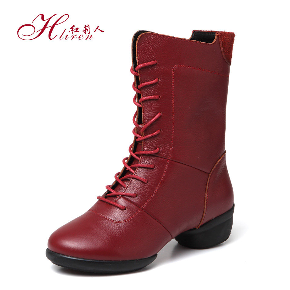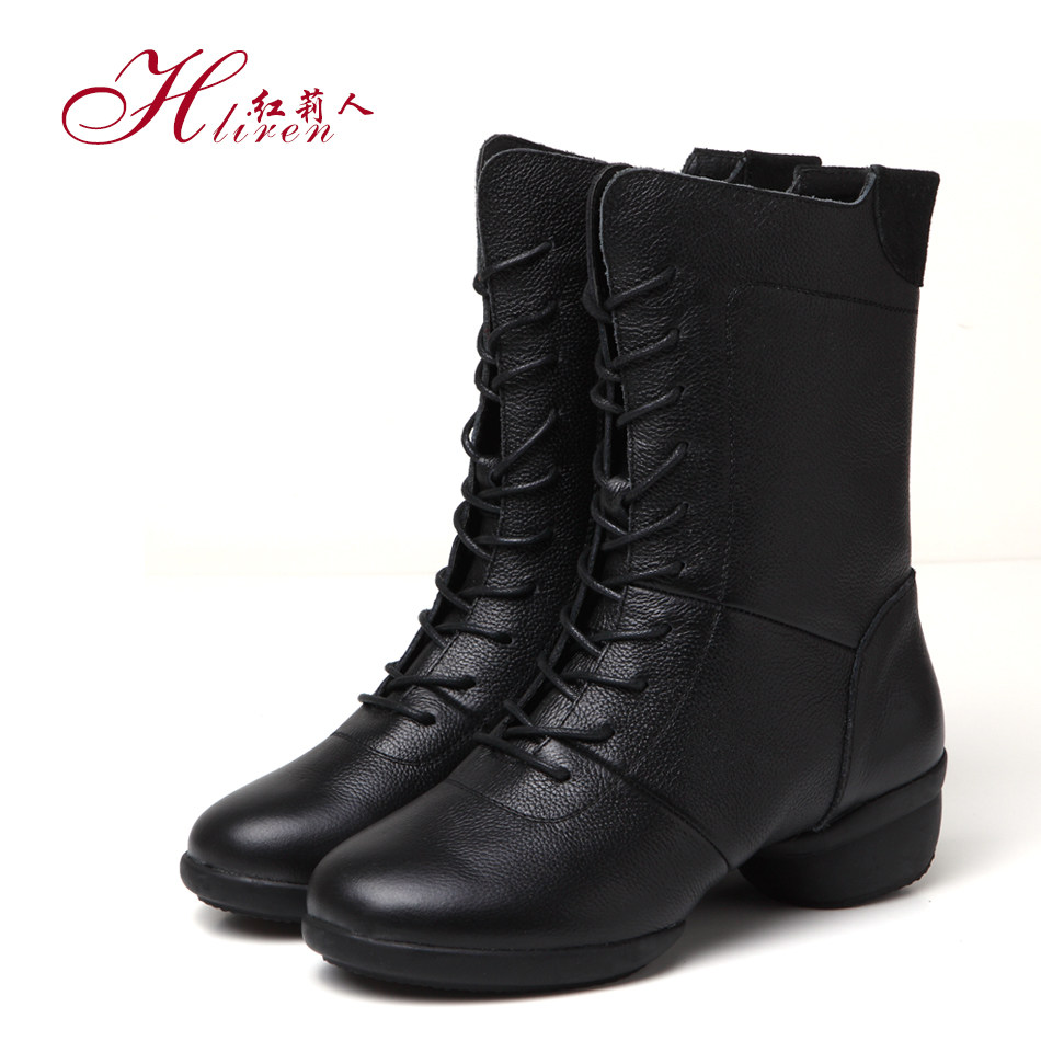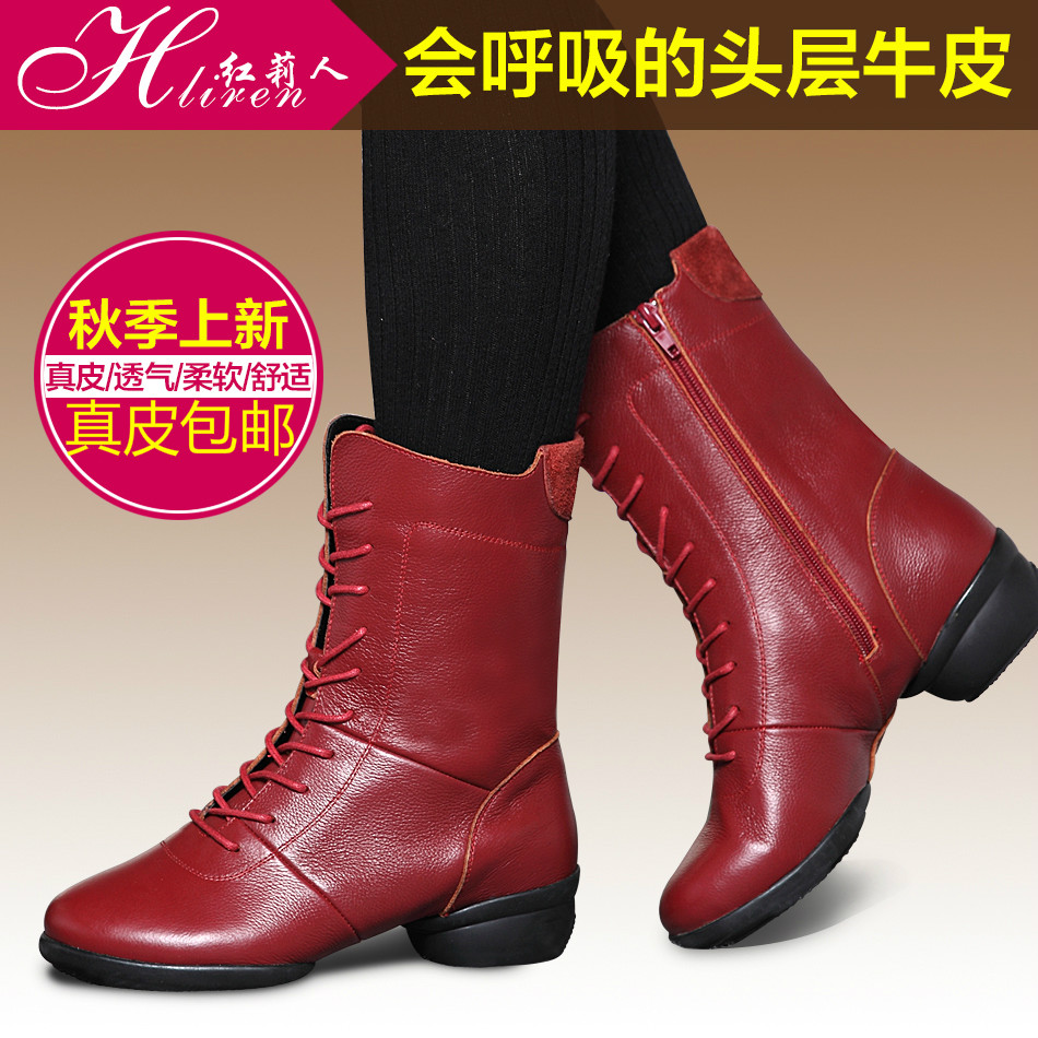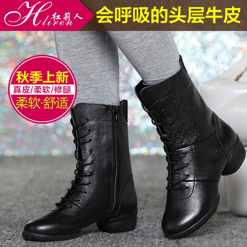 Hongli people dance shoes leather women's soft bottom sailor dance dance shoes adult high tube autumn and winter square dance boots