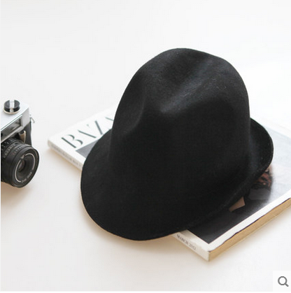 Korean autumn and winter new retro basin hat curling black woolen jazz hat fashion felt hat men's and women's hats
