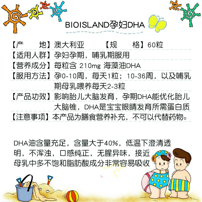 Australia Bioisland Pregnant Women DHA High Purity Algae Oil Pregnant Lactating Nutritional Vitamins 60