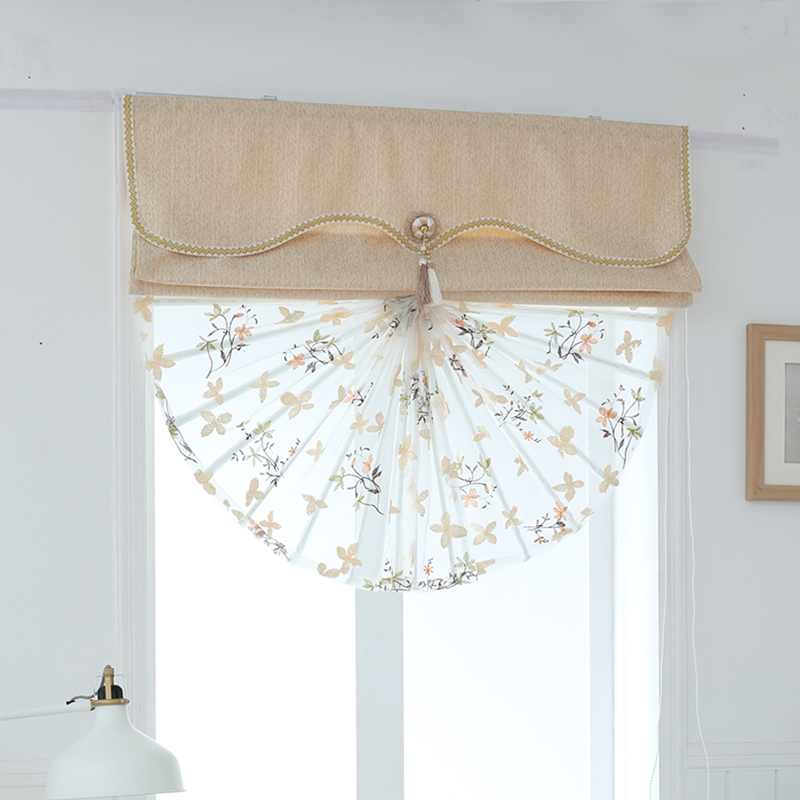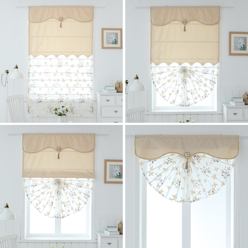 Simple punch-free curtains for living room dining room powder room Korean pastoral fan-shaped Roman curtain lift curtain roller shutter