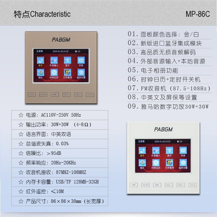 Bergman Embedded Home Background Music Controller Package Bluetooth Amplifier 86 Host SD Card Version