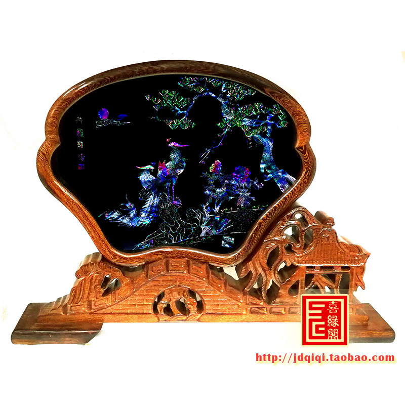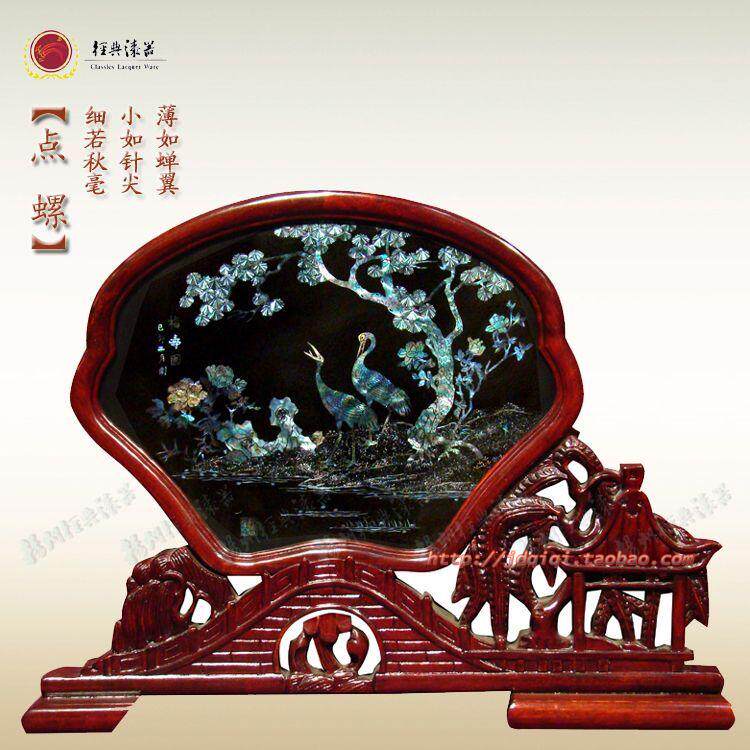 Yangzhou lacquerware abroad business handicraft gifts solid wood carving base dot snail table screen decoration can be customized