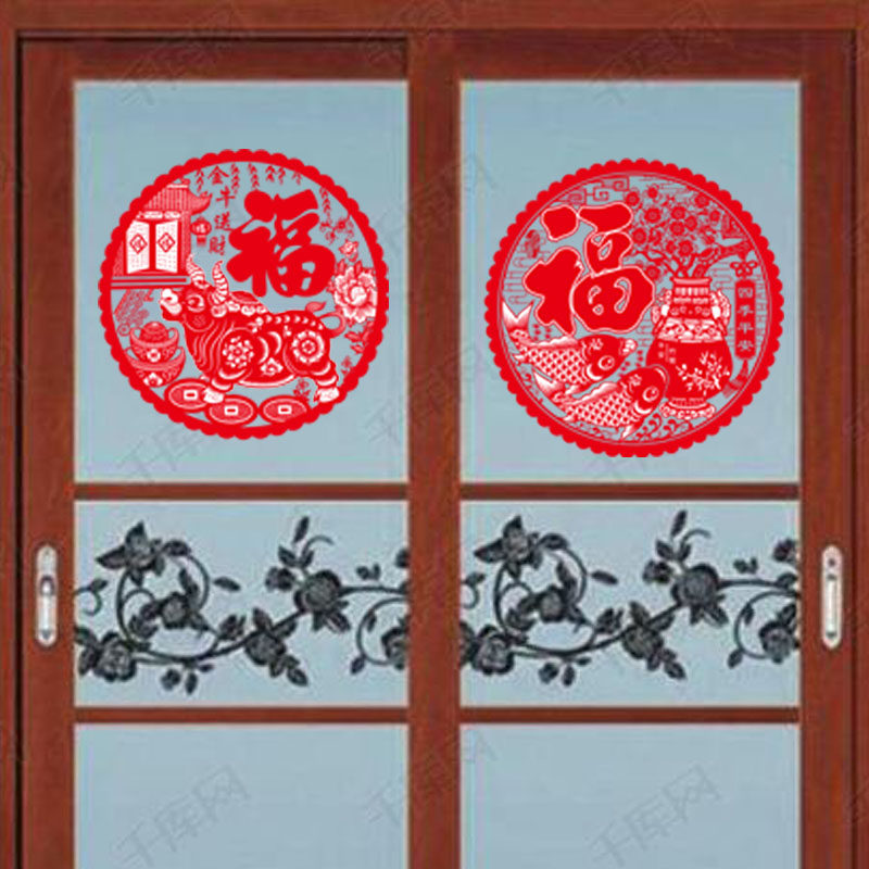 New Year Decorations Items Festive Festive arrangements for the Spring Festival Foeword Window Flower Glass stickers Cut paper Creative electrostatic stickers