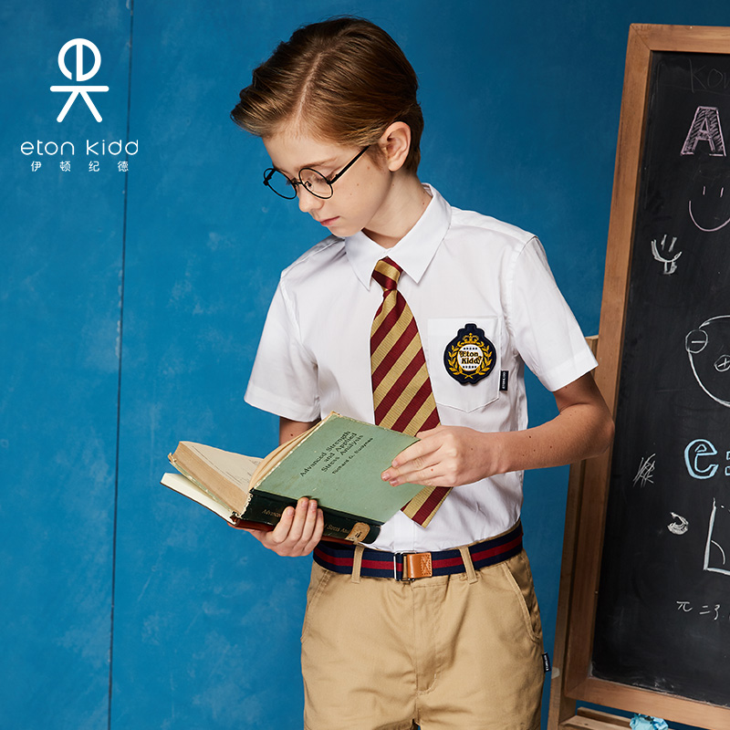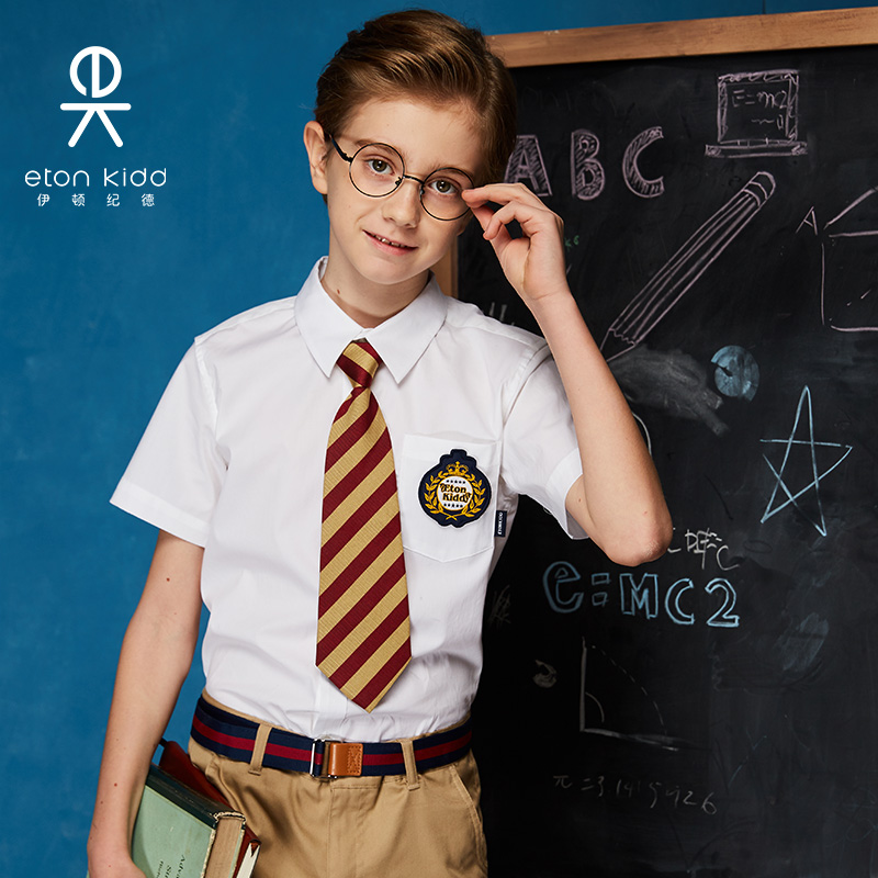Y Eaton Gide Boys School Classic Gentleman Short Sleeve Shirt Boy Boy Summer Half-sleeved White Shirt