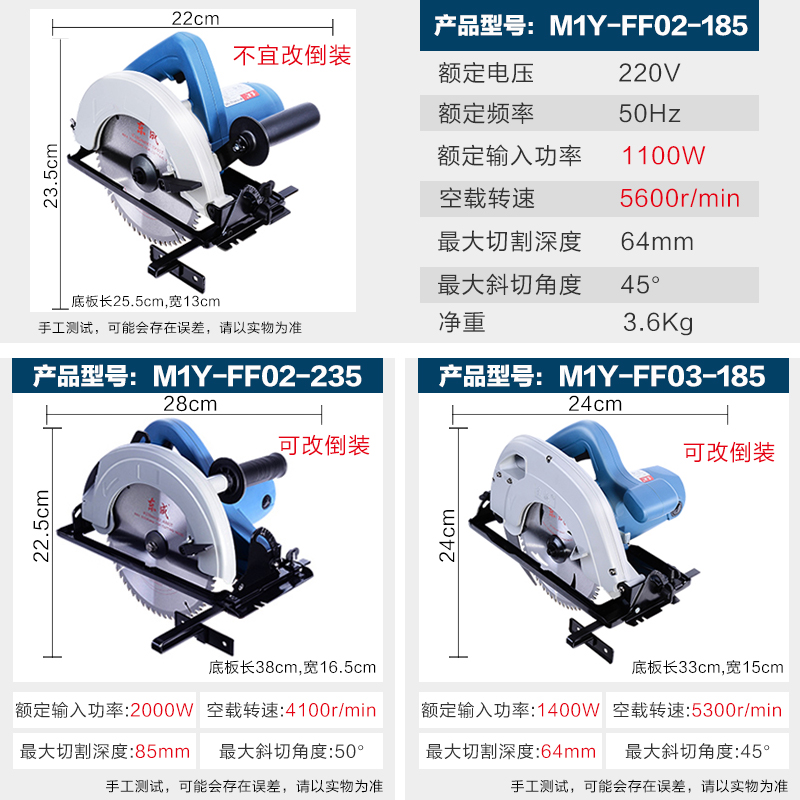 Dongcheng electric circular saw 7 9 inch portable disc saw flip high-power woodworking cutting machine Dongcheng electric tools