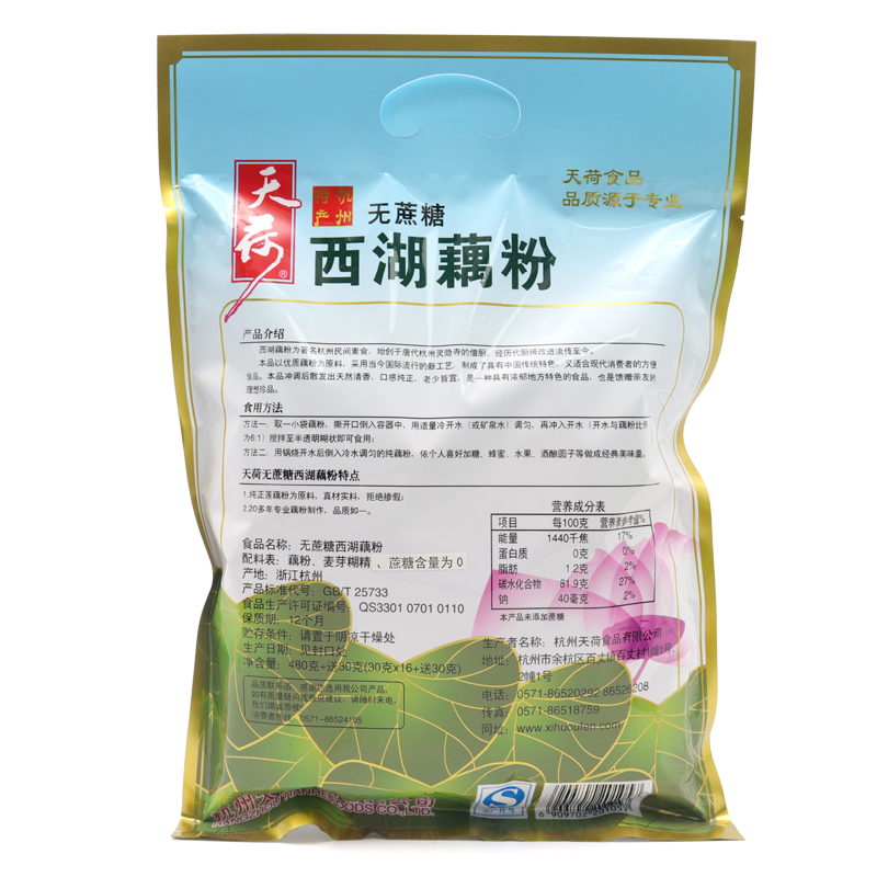 Tianho No Cane Sugar West Lake Lotus Root Powder Hangzhou Special Production No Sugar Instant Grain Pure Lotus Root Powder Spoon Breakfast 480g * 4 bags