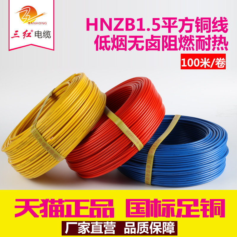 Nanping wire Sanhong cable boutique copper wire Flame retardant and heat-resistant HNZBBV1 5 single core copper core wire