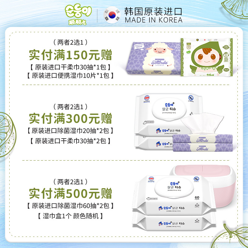 Sunsmooth Korea imported baby wipes handle special wipes carry green mini 40 bag