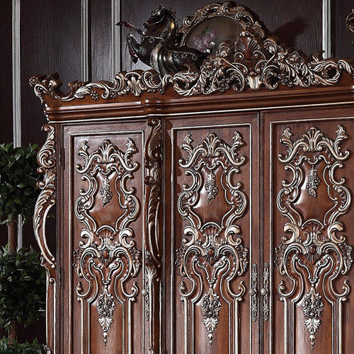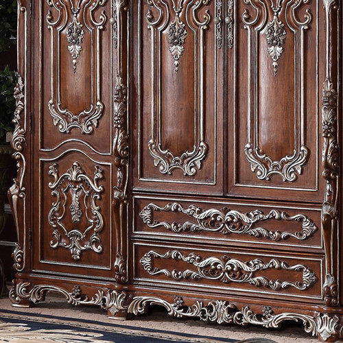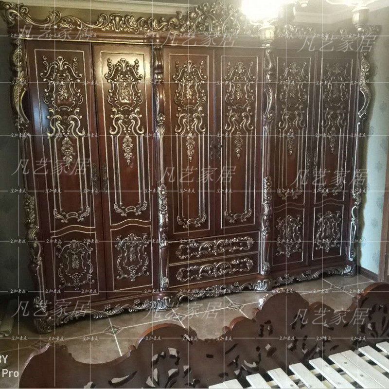 Eurostyle solid wood carved small family of large wardrobe luxurious bedroom furniture 4 doors Wardrobe Fashion Containing Cabinet Big Closet