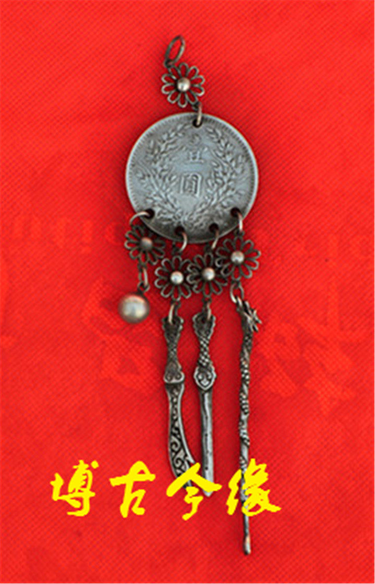 Antique white copper silver - plated padlock pendant silver - yuan national crafts