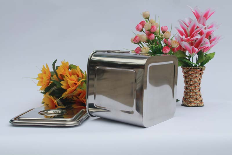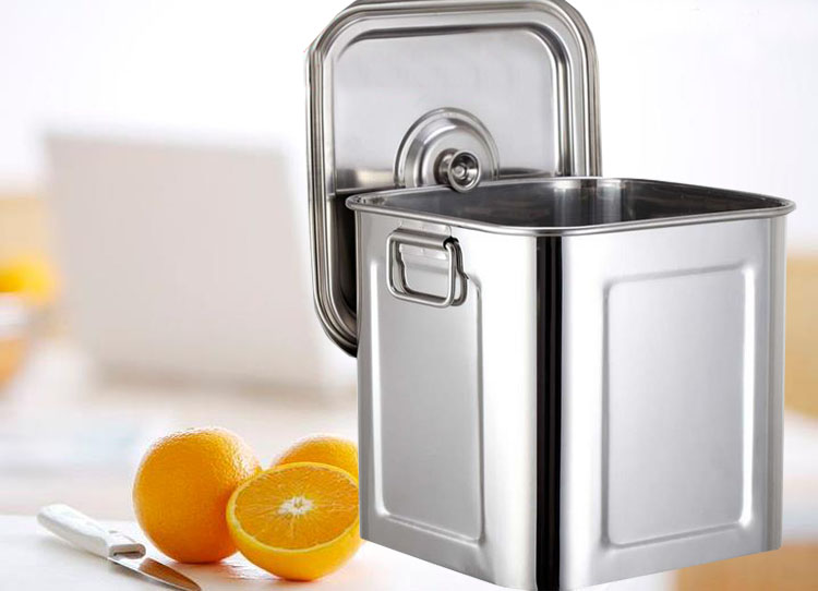 European-style stainless steel square bucket thickened double ear with lid rice tank moisture-proof and insect-proof storage bucket storage tank soup pot high pot