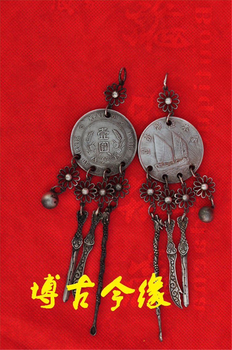 Antique white copper silver - plated padlock pendant Silver Yuan national crafts Sun Yat - shan image