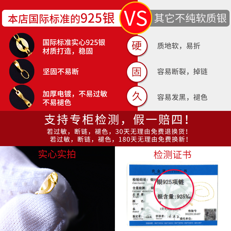 Color silver plated 18k color gold 925 pure silver necklace woman lock bone chain no pendant chain sub yellow gold neck necklace without falling color male