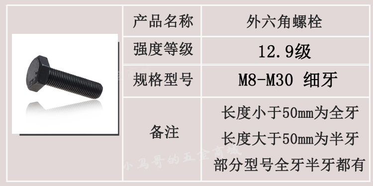 12 9 class fine tooth Outer hexagonal bolt wire high-strength alloy steel M22 * 1 5 * 130140150m m