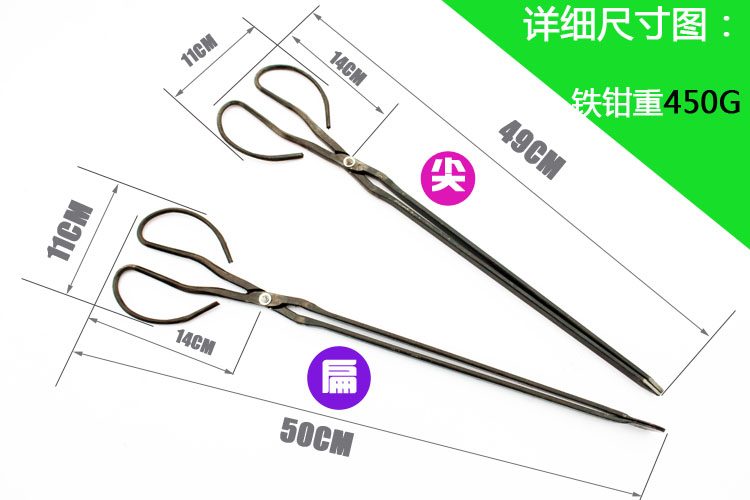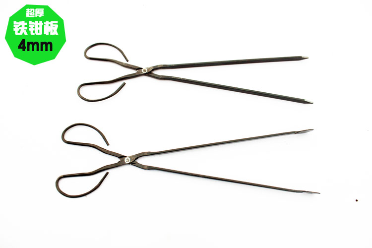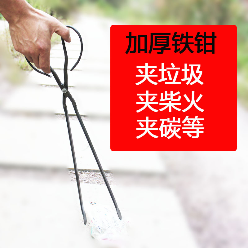 Pointed flat head iron tongs fire tongs clamp garbage clip firewood clip carbon iron pliers soil strike iron tongs outdoor household dual-purpose iron tongs