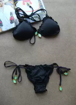 European and American bikini triangle cup can be removed from the original single ultra-fine fabric metal decorative pendant black triangle needle process