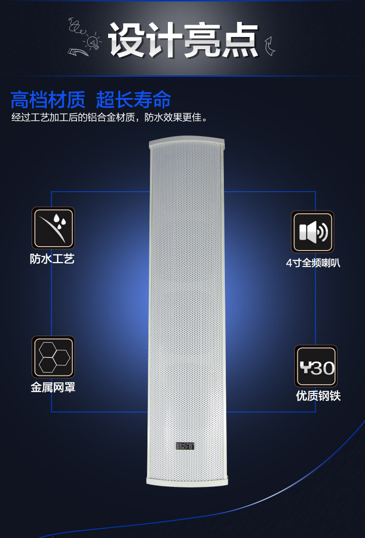 Outdoor audio constant pressure waterproof sound column speaker campus shop public broadcasting audio wall-mounted speaker 20W-60W