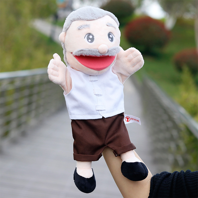 Free shipping cute family hand puppet professional gloves doll dad mouth can move plush toy Santa Claus
