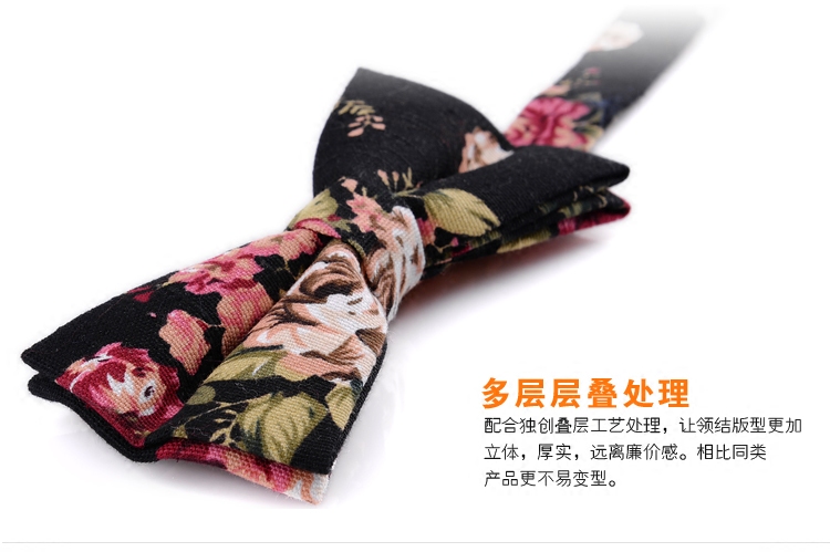Cotton and hemp men and women's trend flower bow tie bow tie men's wedding dress Korean version of the British College wind bow bow tie tide