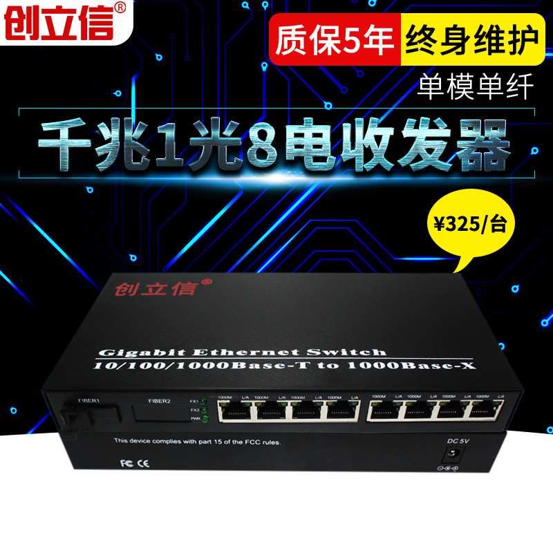 Gigabit 1 Optical 8 electrical optical fiber transceiver Single-mode single-fiber one optical 8 electrical port monitoring network switch