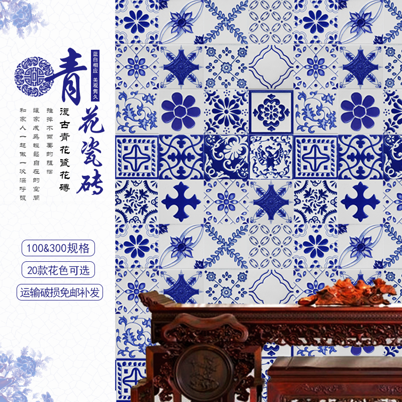 Blue Flower Brick 100 Kitchen Makeup Room Stairs Skirting Board Green Flower Porcelain Balcony Bright Face Small Flake Tiles 30x30