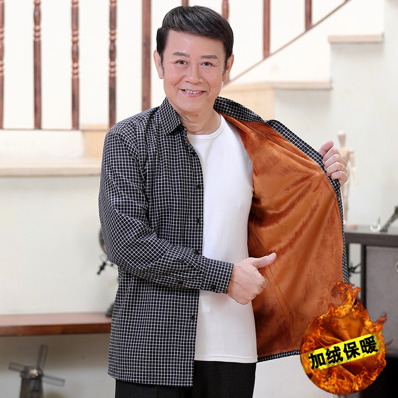 Winter middle aged warm shirt male gvet thickened dad shirt long sleeve loose casual middle-aged men's shirt