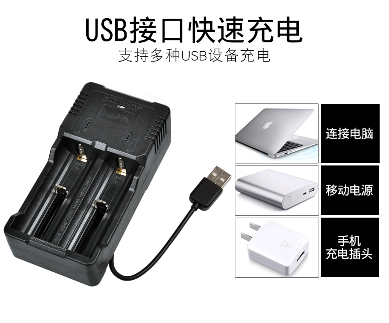 Smart dual-slot 18650AC26 multi-function charger for flashlight 26650 battery