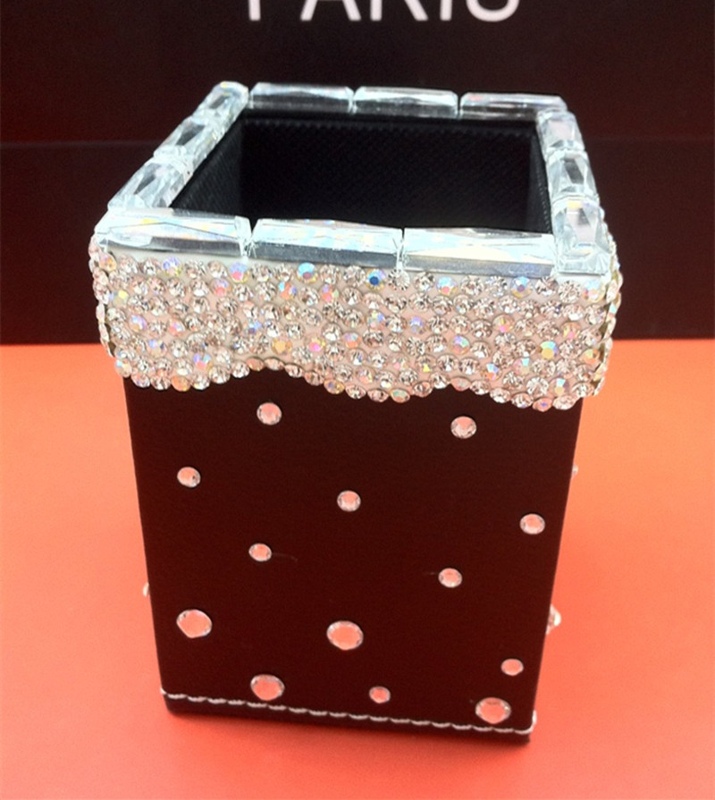 Creative Fashion Water Drill Office Supplies Square Pen Holder High-end Luxurious Inlaid Drilling Crystal Personality Pen Holder New