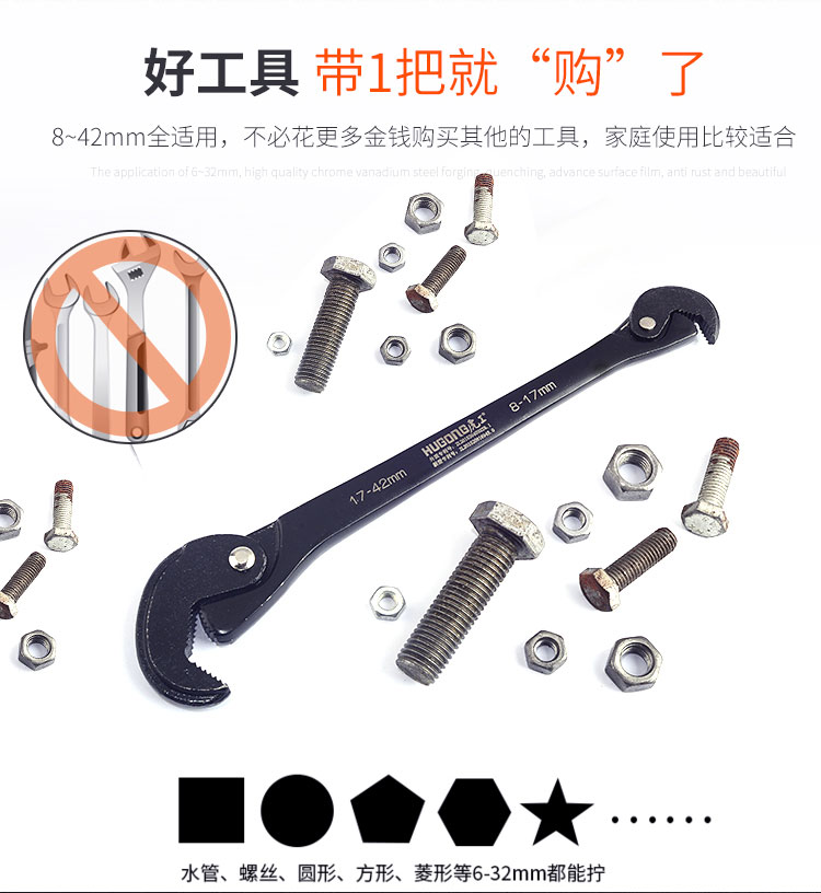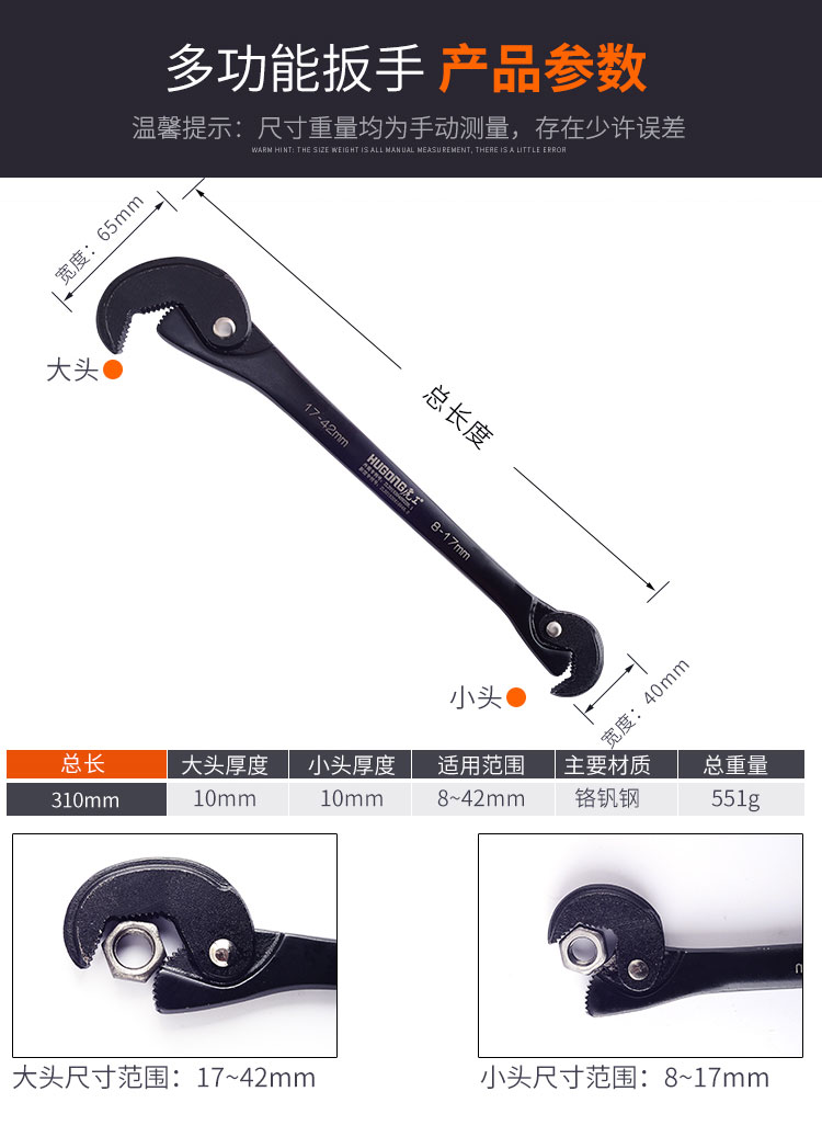 8-42 QUICK WRENCH UNIVERSAL WRENCH UNIVERSAL WRENCH WATER PIPE PLIERS MULTIFUNCTION WRENCH DRAGON HEAD TABLE BASIN REPAIR