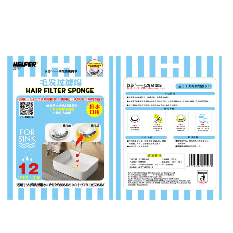 Bathtub hair filter Washbasin Sewer anti-blocking filter cotton Sink sink drain filter sponge