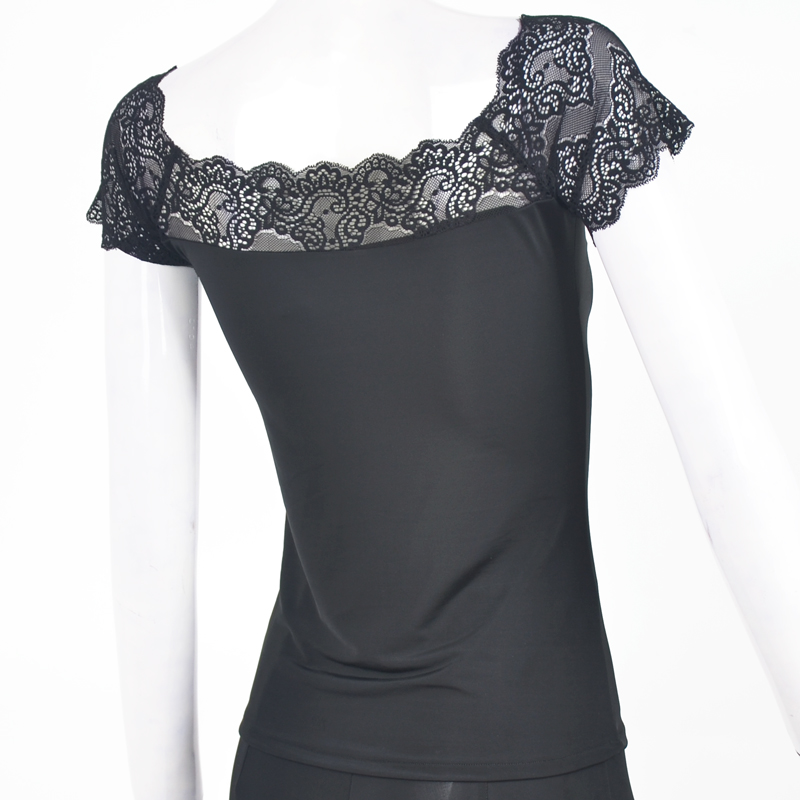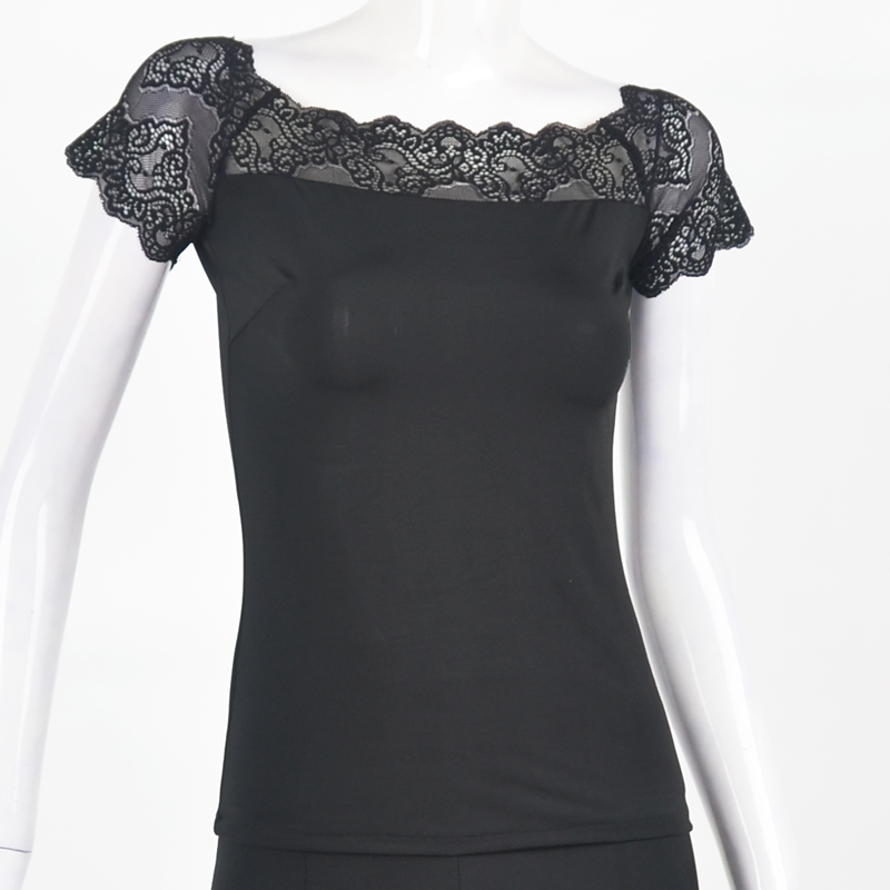 Exotic dance modern dance large round collar short sleeve lace openwork lace modern practice top T15028