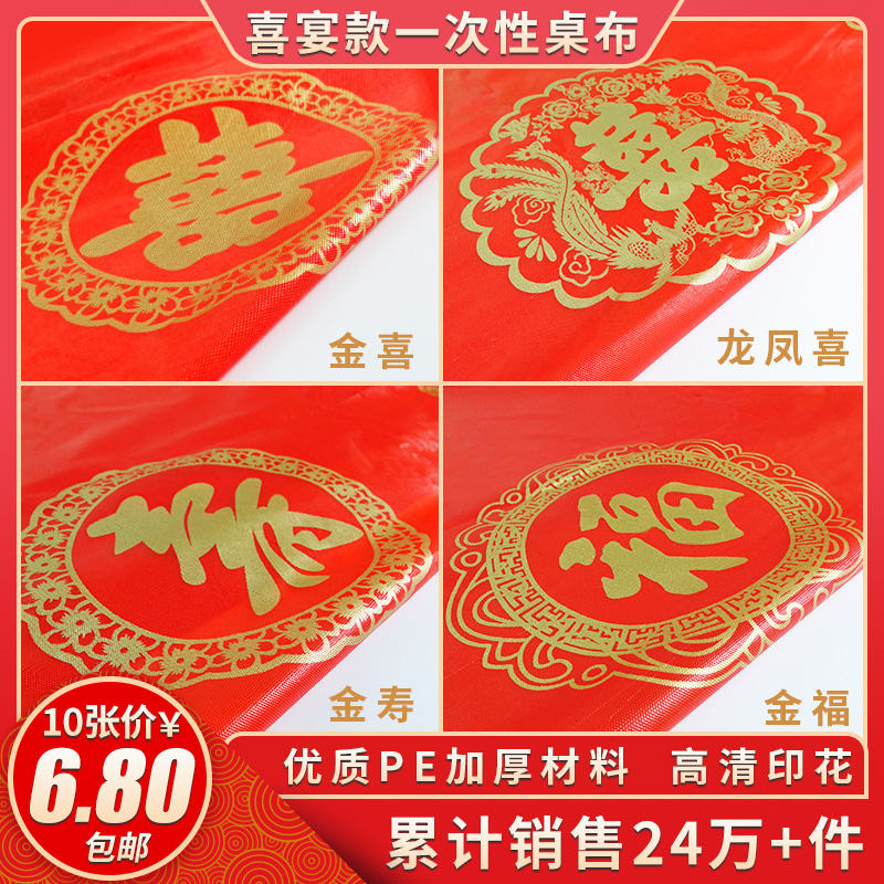 Disposable tablecloth wedding wedding wedding banquet red wedding banquet thick celebration word round table festive tablecloth