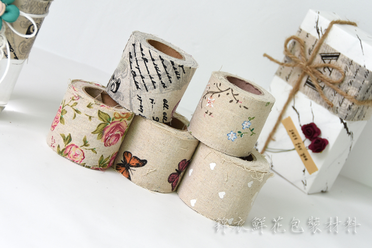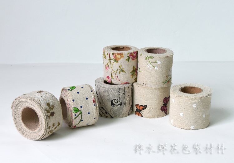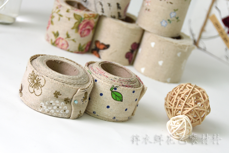 Retro cotton and linen printing ribbon ribbon retro literary cloth belt brocade flowers gift packaging material decoration handmade