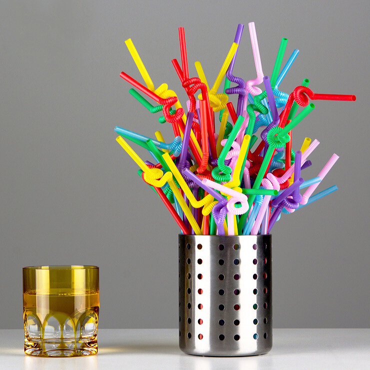 Creative handmade art straws disposable children's beverage color long straws single independent packaging elbow plastic