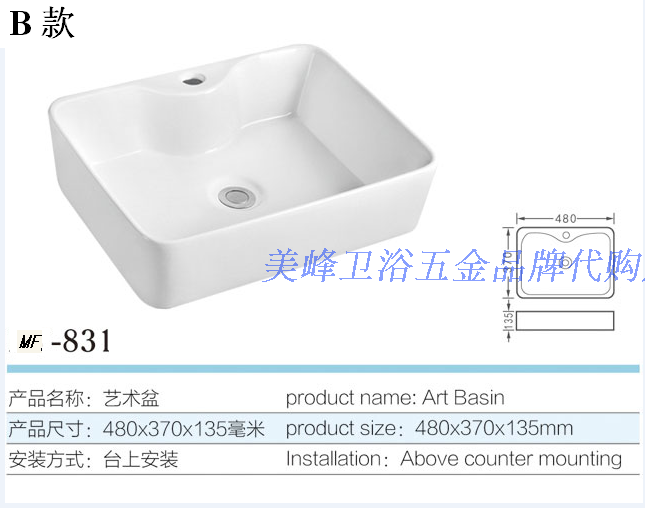 Meifeng Single-Pore Art Table Basin Basin Basin Bathroom Ceramic Square European Washing Groof