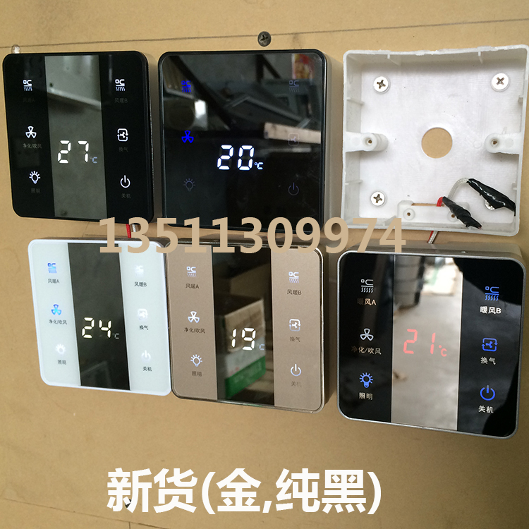 Touch smart switch 5 open six control black screen glass panel bath barber switch with temperature shows added time-Taobao