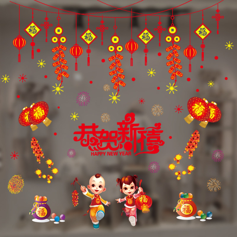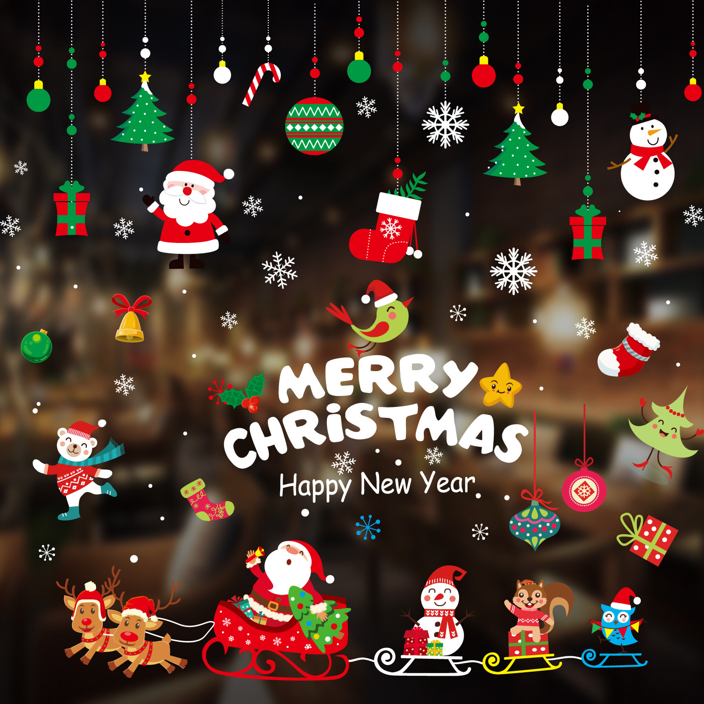 Christmas stickers glass stickers with static stickers for the Spring Festival New Year's New Year Window Window Sticker Mall showcase Christmas Decorative Scene Arrangement