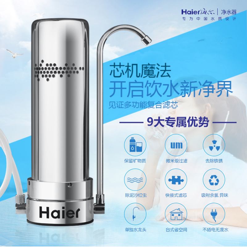 Haier water purifier household kitchen tap water filter HT101-2 stainless steel desktop faucet water purifier