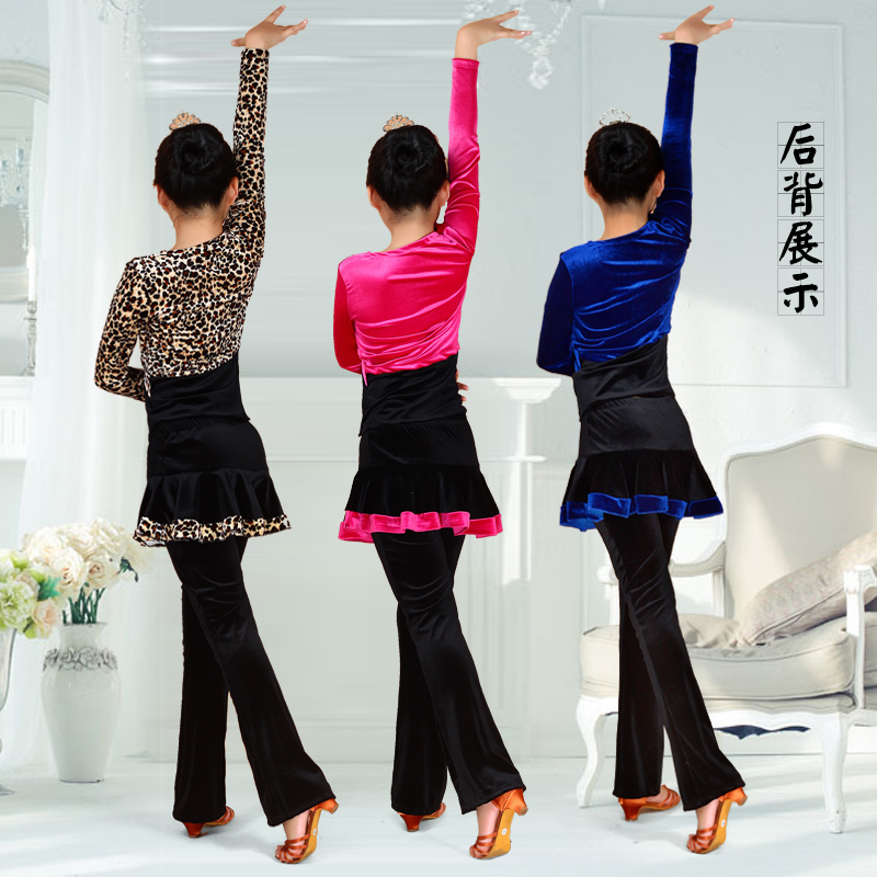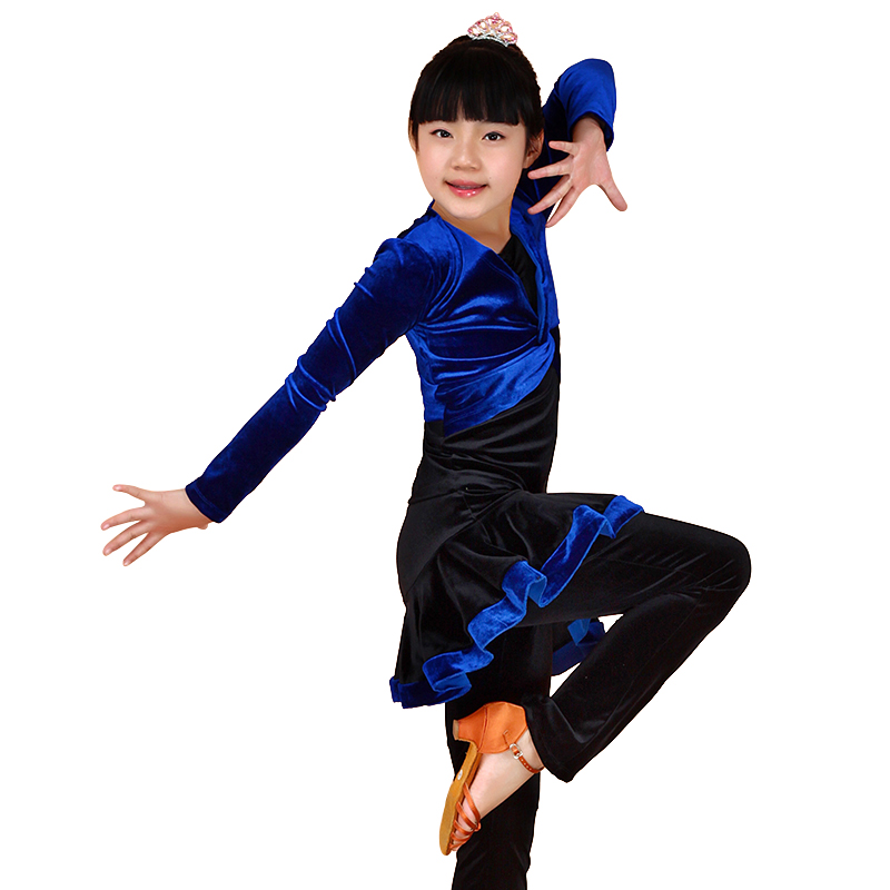 Children Latin Dance Dance Clothing Gold Velvet Two-piece Toddler Girl girls BAO WEN Practice Martial Suit Autumn winter
