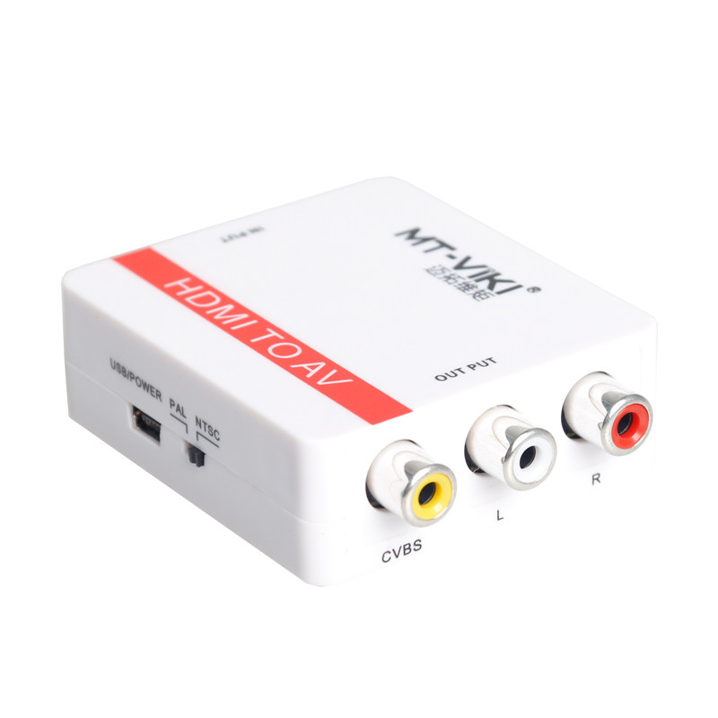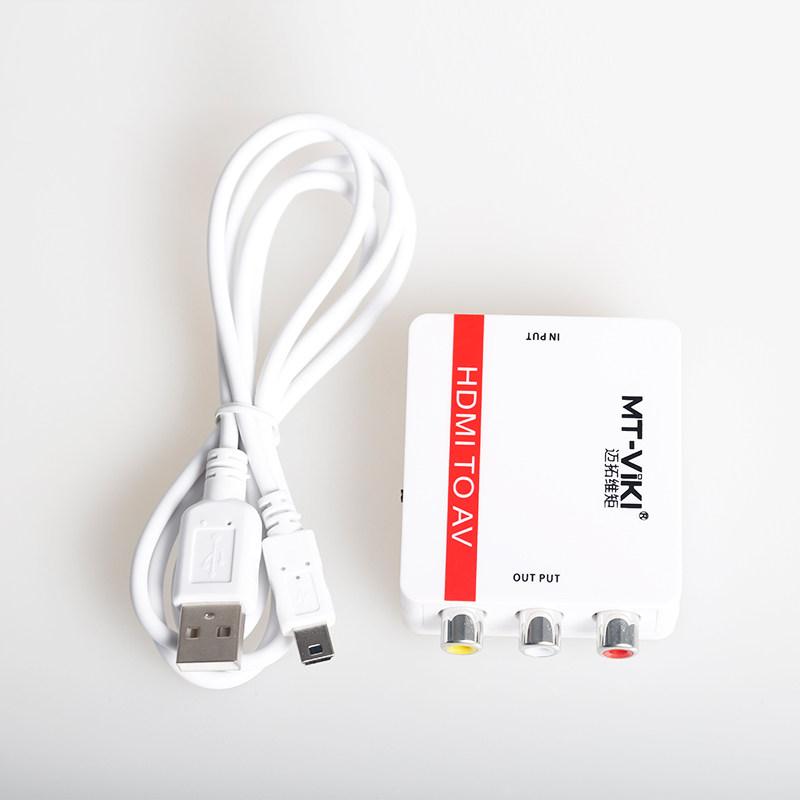 HDMI to AV red white yellow lotus head RCA HD video converter plastic box digital to analog MT-HAV03