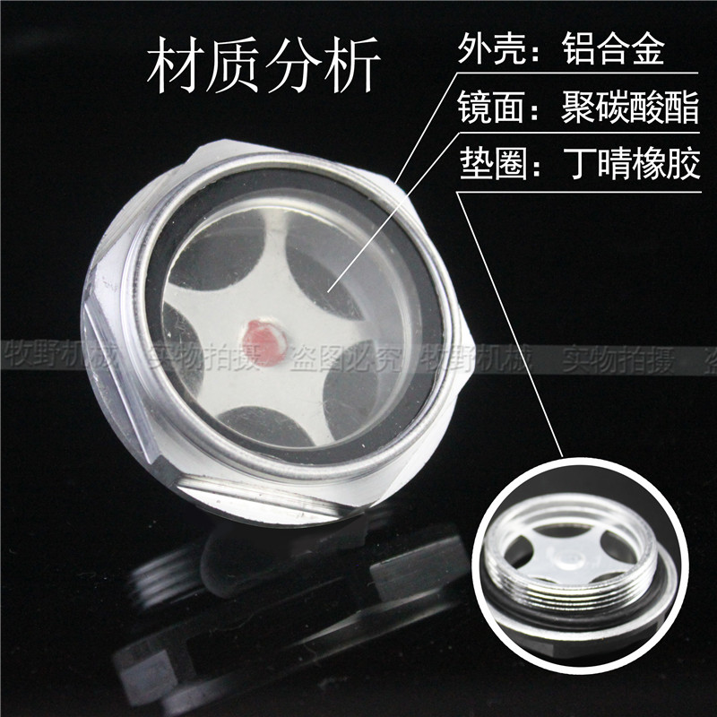 Reducer Aluminum alloy oil standard oil mirror Aluminum oil window Air compressor round oil hole observation mirror Oil window hole oil cup