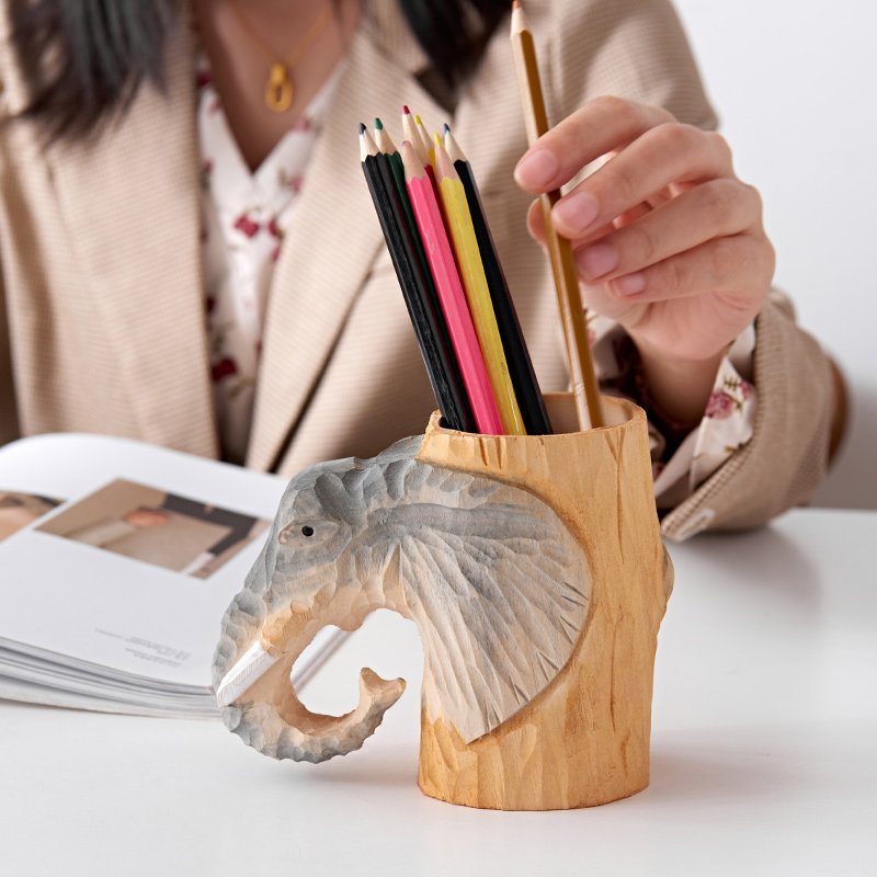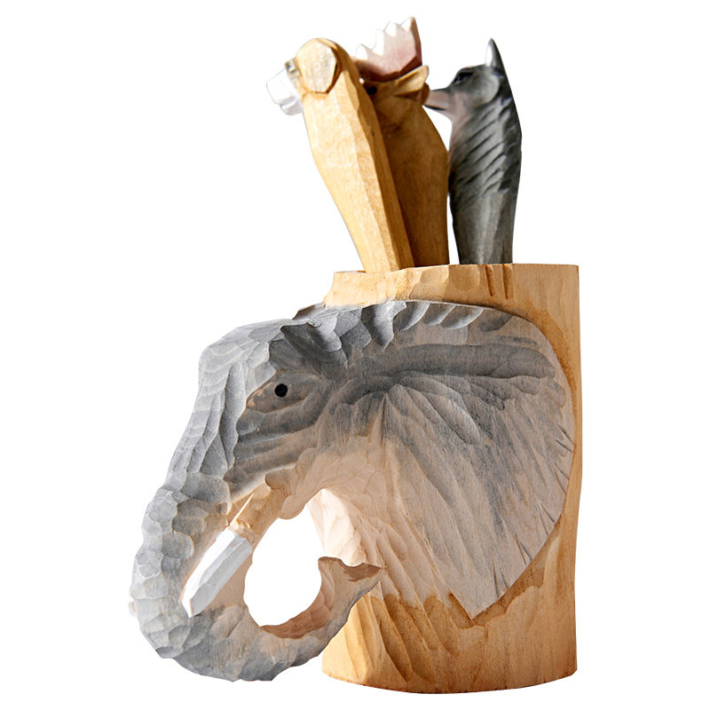 Inman home modern minimalist creative home decoration European and American hand carved solid wood carving pen container