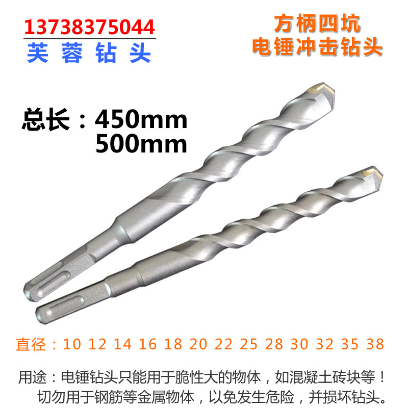Square Handle Four Pit Hammer Drill Impact Alloy Drill Wall Strengthening Cement Bill 10-35*450mm