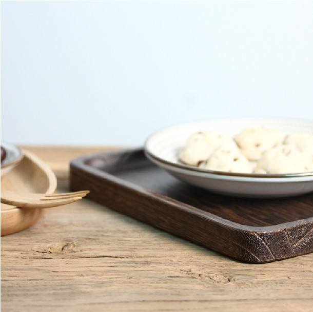 Square wooden tray solid wood tea tray afternoon tea cup tray dinner tray tea tray hand-burned tung