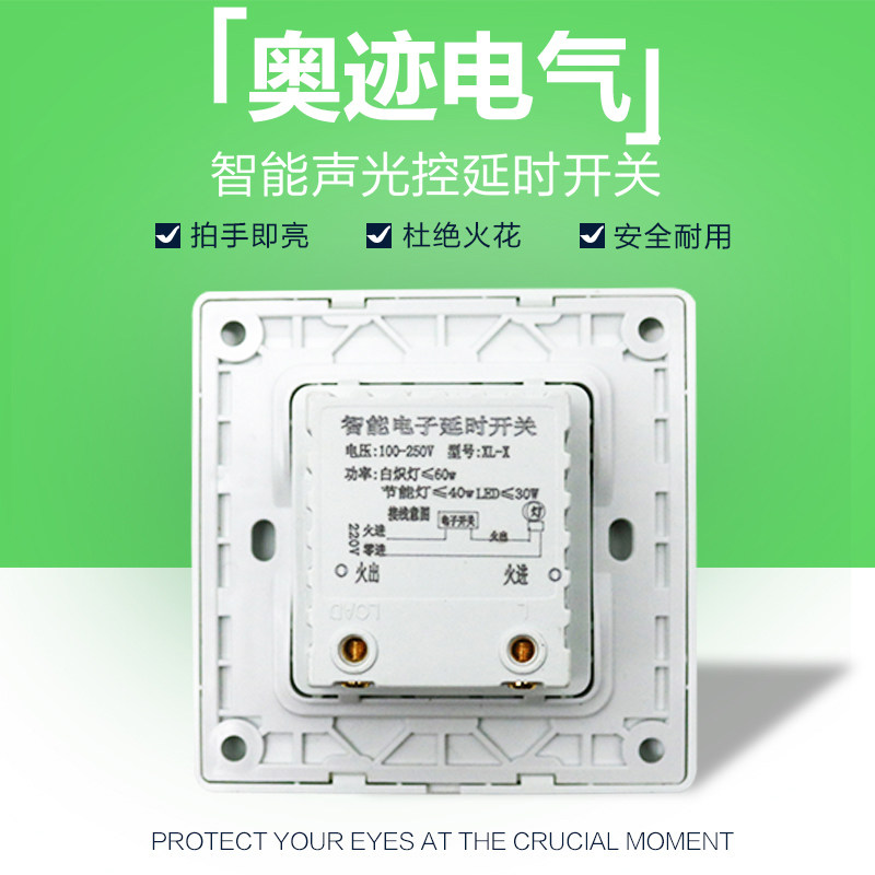 86-type sound-activated switch corridor intelligent sound-light control delay sensor panel controllable energy-saving lamp LED dark installation 220v